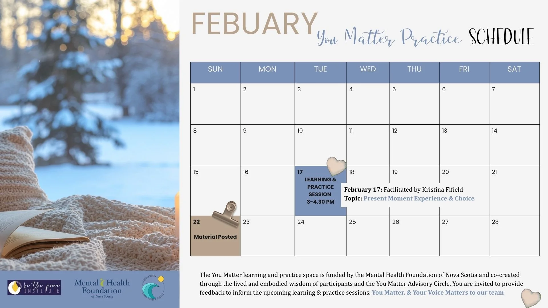 You Matter, funded by the Mental Health Foundation of NS is in partnership with Be the Peace Institute and Kristina Fifield Trauma Therapy, with an Advisory Circle of valued colleagues.